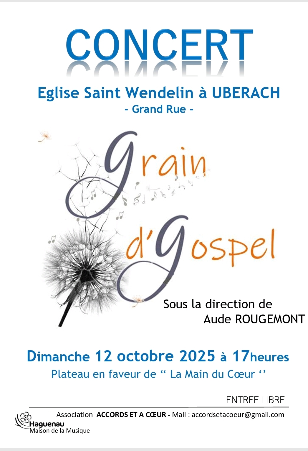 RDV dimanche 12 octobre 2025 à 17h, église St Wendelin, Grand Rue, à Uberach