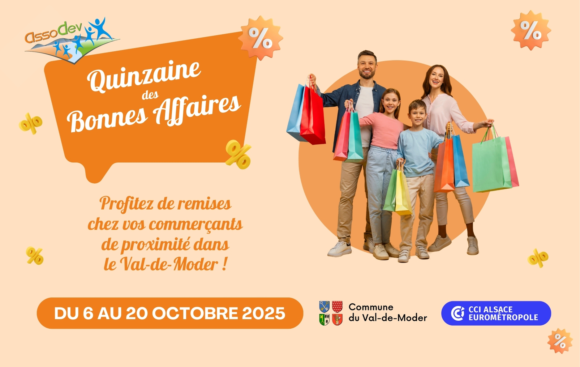 Du 6 au 20 Octobre 2025, profitez de remises et d'offres exclusives chez vos commerçants de proximité dans le Val-de-Moder.